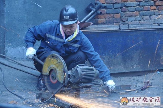 全国煤炭系统优秀班组长、省“技术能手”、省“五一劳动奖章”获得者、高级技师、河南能源集团鹤煤公司三矿煤一队机电班长王建军技术高超,武艺精湛,被员工称为“牛人”。图为,12月16日,王建军正在进行技术改造切割三角铁。