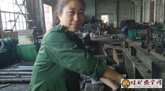 液压车间女汉子乔彩虹孰能各种设备检修工作,牢记各种设备名称,了解各种设备的结构、性能、和工作原理。虽为一届女流,却丝毫不输于男性。大概是在元月份的时候,因井下工作面的更改,我液压车间接到通知,急装一部110皮带,液压车间人数本就不多,大家都在尽力安装过程中,班长突然接到电话,区队来领型号为320皮带机尾滚,该设备没有新的,就在此时,乔彩虹出面申请带领一个青工去进行检修,不到两小时检修完好,经检查完好设备及时被领走,保证了区队工作正常运转,后来此事一直被传闻佳话;谁见了都会说一句“嘿,老乔,厉害啊”她总是笑着说哪有厉害,只是工作需要嘛!很低调的一个女汉子。我认为,她是我们女性典型的楷模,(图1)为乔彩虹在安装55皮带架的瞬间抹笑。在我看来,她是那么的给力,液压车间的女汉子一直是最善良朴实的煤矿女人。