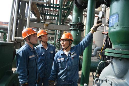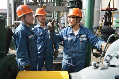 他的家乡是一个经济欠发达的小镇,当年由于家境贫寒,无奈之下选择就读中专,早工作早为家里分忧。工作后的他充分利用业余时间,参加成人高考,完成大学专科和本科各项科目,圆了心中多年的大学梦。凭着扎实的业务水平、丰富的实践经验,2014年,余海涛代表淮北市参加安徽省首届职工安全知识技能竞赛。他以精准的判断、规范的操作一举夺得化工行业第一名,并荣获安徽省“五一劳动奖章”。对于取得的成绩,余海涛始终认为是企业团队凝聚的力量。作为一名党员,他积极发挥“传帮带”作用,用力培养出一批人才,他们有的成为操作能手,有的已成为车间技术方面的中坚力量。十一年来,在他的参与和带领下先后完成粗苯系统补油改造、终冷塔清扫方式创新、蒸氨塔内件改造、煤气加热方式变革、鼓冷尾气洗涤塔改造等十几项技术改造。坚守在岗位的时间多了,回家的日子便少了。每当回到家看到年迈的父母、贤惠的妻子、懂事的儿子,余海涛的心里总是酸酸的,总感觉没有尽到儿子、丈夫和父亲的义务和责任,心中充满了愧疚。而他本人身体也不好,肾结石一拖就是三年多,直到出现严重的肾积水才不得不去做手术。出院后没几天时间,他不顾家人和领导的劝阻,坚持回到工作岗位,并笑称:“我年轻没事的,战争年代轻伤不下火线,我这不算啥。”万众瞩目的“十九大”顺利落幕后,余海涛作为一名基层技术人员和一名共产党员,他深感责任重大,认为“一代人要有一代人的使命,一代人要有一代人的担当”,同时他以“十九大报告指出的‘创新是引领发展的第一动力’”为动力,将继续立足本岗位,干好本职工作,以实际行动为祖国献礼。图为临涣焦化公司技术大拿余海涛正在给新工人现场“授艺”。