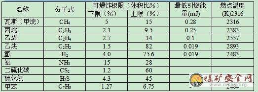 由上可知,5%是爆炸下限,15%是爆炸上限,它还随着初始压力的上升而提高。任何爆炸性气体混合物都存在着爆炸的下限和上限,现将列举几种名称列表所示。
