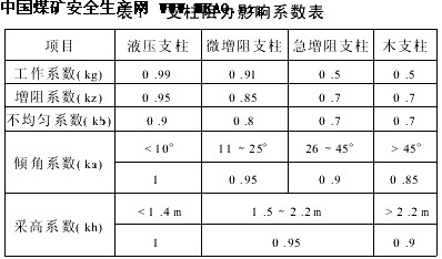 ①支护设计中,支柱实际支撑能力与支柱在采场实际工作状况、增阻过程、支撑不均匀状况和采煤工作面的倾角、采高等因素有关,其计算为: