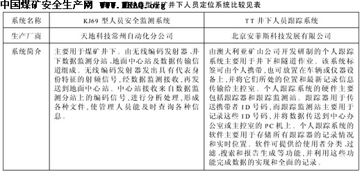 1两种典型煤矿井下人员定位系统比较 两种典型煤矿井下人员定位系统比较见表1.