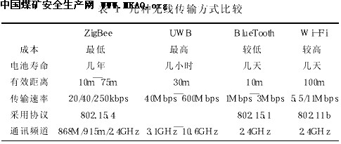 从表1中可以得出低功耗、低成木的就是ZigBee技术的优势,而这些恰好适用于煤矿井下巷道多曲折、多风门等结构特点,电源供电限制严格、煤炭行业资金短缺等特点。尽管它有着较低数据传输率,但是这一传输速度仍能够满足井下人员定位系统的需求。
