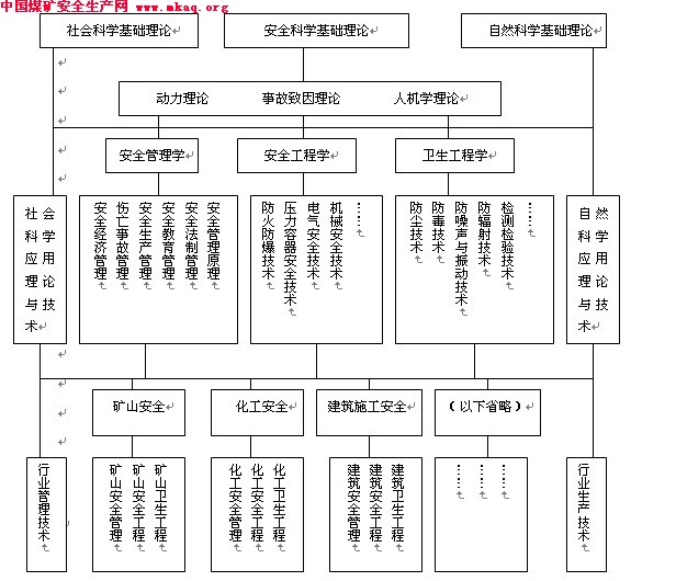 安全管理学的许多内容又与社会科学和自然科学的应用理论相互渗透、相互交叉(如安全立法与法制,事故预测与系统工程,安全教育,安全心理与行为等)。同样,在工程技术方面,如机械安全技术,它既要以安全科学的基础理论为依据,还要以自然科学的理论力学、弹性力学、材料科学等为基础,而某些内容又与机械制造学相互渗透和交叉。在安全科学专业技术中,除以本身的工程技术理论为依据外,同时又与产业生产技术的某些内容相互渗透和交叉。