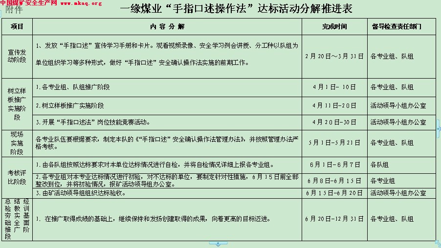 附件:一缘煤业“手指口述操作法达标”活动分解推进表
