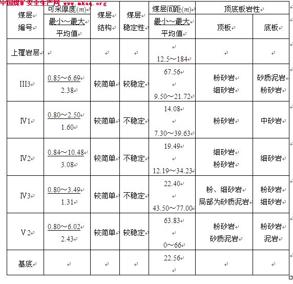 各煤层的稳定性及可采煤层特征见表1-2,煤质特征见表1-3。
