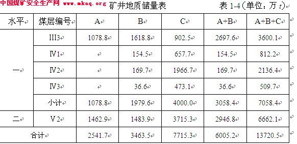 矿井地质储量表 表1-4(单位:万t)