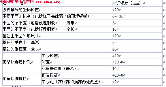 b.锅炉及其辅助设备基础的允许偏差如下: