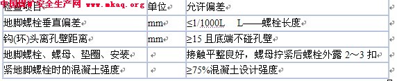b.水泵安装时将泵座置于基础上,挂上地脚螺栓,对准地脚螺栓孔。地脚螺栓安装见下表: