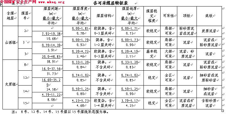 各可采煤层情况详见表1-2-1。