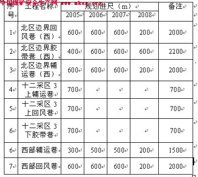 采、七采)的开拓。2004年重点开拓工程及重点开拓采区安排见表四、表六。