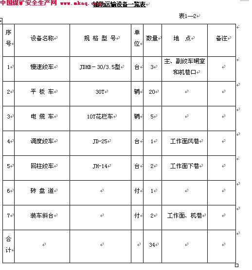 附表1-2:辅助运输设备一览表