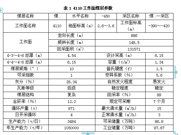 1.2工作面参数
