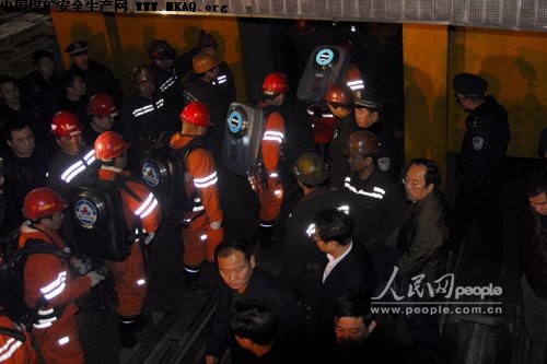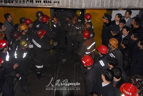 救援人员排队下井。(人民网记者鲍丹 摄)