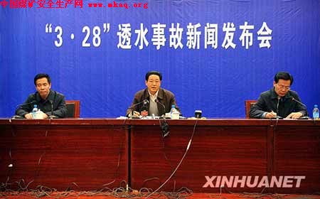 ????3月29日,华晋焦煤公司王家岭矿“3·28”透水事故新闻发布会在山西河津举行,通报事故救援最新进展。新华社记者?詹彦?摄