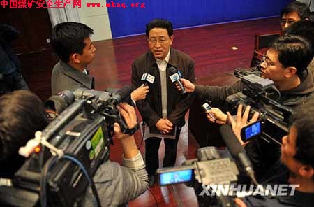 ????3月29日,山西省安全生产委员会办公室副主任刘德政接受记者提问。当日,华晋焦煤公司王家岭矿“3·28”透水事故新闻发布会在山西河津举行,通报事故救援最新进展。新华社记者?詹彦?摄