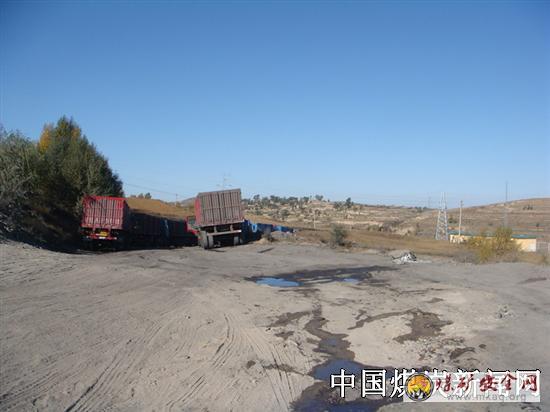 二条长龙的重型拉煤车拥满进入煤矿的路口